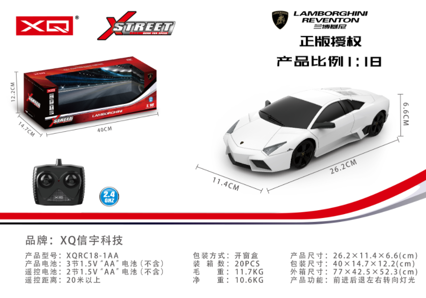 | 型号 | XQRC18-1AA | 品名 | 1:18 兰博基尼超跑雷文顿(白色) |