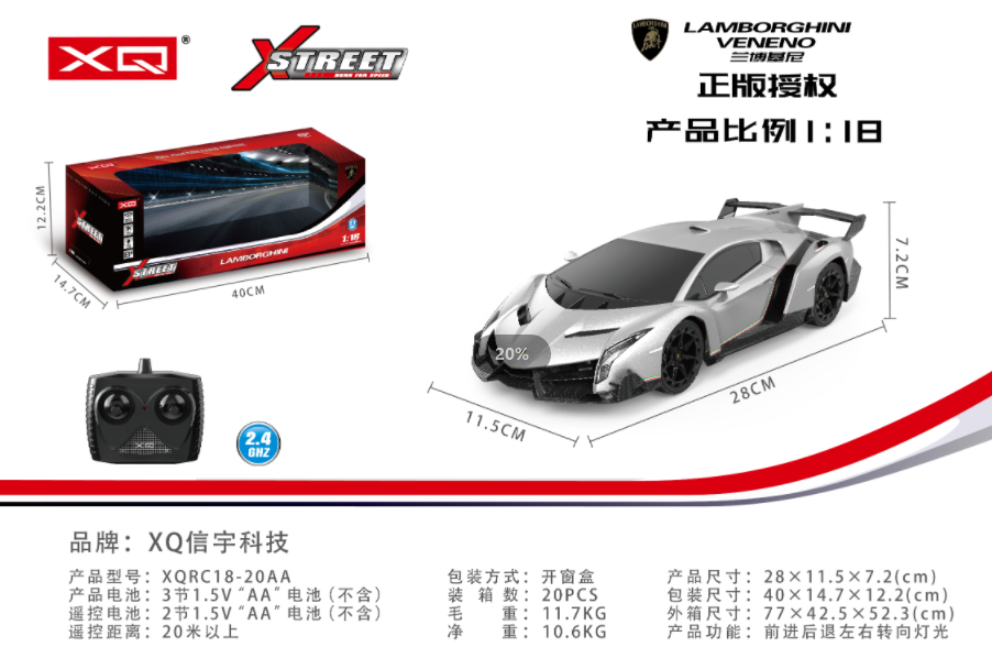 | 型号 | XQRC18-20AA | 品名 | 1:18兰博基尼毒药 (银灰色) |