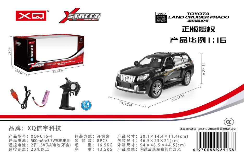 | 型号 | XQRC16-4 | 品名 | 1:16丰田普拉多 黑色(正版授权) |